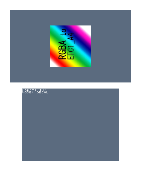 After the above log output completes, texture images for each of the following four types of formats are displayed in order on the upper screen: