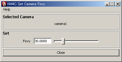 From the NW4C menu, run NW4C Set Camera Fovy to display a window.