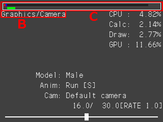 As for CPU processing time, the red part shows the time required for things such as animation and SRT calculations, while the blue part shows the time used for rendering.