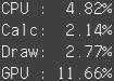 CPU: The relative amount of time spent for animating and rendering, up through the completed sending of data to the GPU.