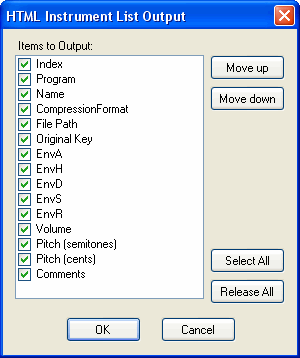 You can output instrument lists to an HTML-formatted file in the same way as HTML sound list output.