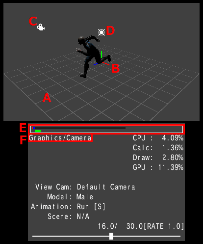 R Button & B Button Shows/hides the grid, camera viewpoint, particle emitter shape and screen information.