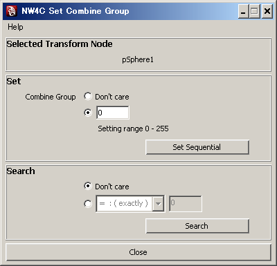 It is also possible to search for settings. Select NW4C > NW4C Set Combine Group... to display the window.