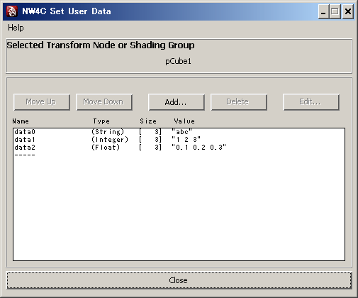 This plug-in sets user data for a transform node (joint node) or shading group.