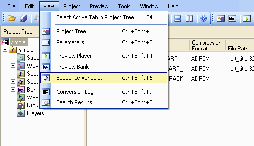 Sequence Variables is the window for PC emulation playback on SoundMaker. Its operations correspond to the SeqVariable window of Viewer and SoundPlayer.
