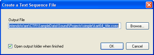 A dialog opens to specify an output location, so set this together with a filename to create the text sequence file.