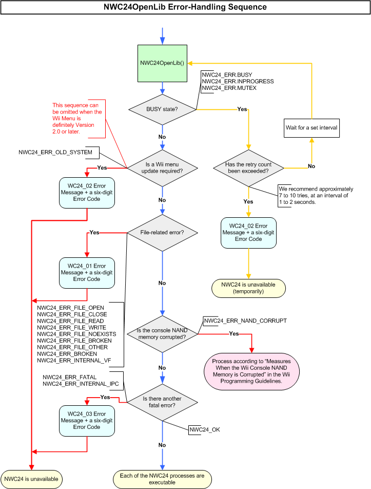 The error handling sequence in NWC24OpenLib is shown below.