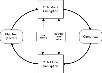 | initial counter value | Data that makes the ciphertexts differ in CTR mode, even if the same key, plaintext, and cipher algorithm are used. It is not secret. A different value must be used each time encryption is performed. |