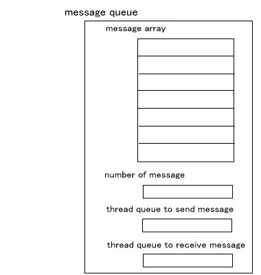 The "message array" in the figure is the OSMessage array and is the message region. The user specifies this size during initialization. This region is used as the FIFO queue. Internally, it is actually the ring buffer, and there are variables that exist to control it. However, the explanation on this page has been left out.