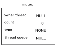 When the mutex is initialized by the OS_InitMutex function, the owner of the OSMutex thread, the count value, the thread type, and the thread queue have the values shown in the following table. (The count member of OSMutex contains two pieces of information: the count value and the mutex type. This information is shown as count and type.)