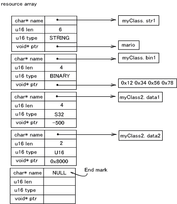 resourceArray[] is an array that holds resource arrays. Because resourceArray[] is an array of NULL members that is defined with the WEAK symbol in the system, it is useful for the application to define the array itself. Because resourceArray[] is an array of resource arrays, it can specify a number of necessary resource arrays all at once.